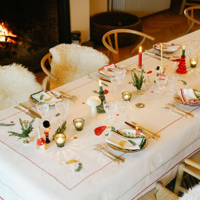 Ontdek de magie van kerst met het Tafelkleed Merry Red 170x360cm, jouw ultieme metgezel voor feestelijke diners. Stel je voor dat je een tafel dekt met een vleugje natuurlijke elegantie, dankzij de fijne mix van 60% katoen en 40% linnen. Het subtiele borduurwerk voegt een artistieke flair toe die je gasten zeker zal betoveren. De rijke rode kleur vangt de essentie van de feestdagen en creëert een warme, uitnodigende sfeer. Dit kleed is niet alleen stijlvol maar ook praktisch; was het eenvoudig op 40°C met een mild detergent, zodat je je geen zorgen hoeft te maken over morsen of knoeien. Of je nu een intiem diner organiseert of een groot familiefeest, met dit tafellaken omarm je de fijnste tradities terwijl je een verfijnde uitstraling behoudt. Laat je tafel sprankelen en maak indruk op je geliefden met dit stijlvolle en functionele pronkstuk.