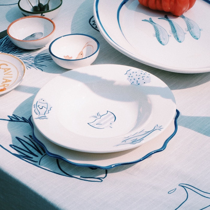 Het More Fish in the Sea pastabord van Pastabord is een absolute eyecatcher voor jouw tafel. Met een diameter van 35 cm en een hoogte van 6 cm biedt dit bord niet alleen genoeg ruimte voor je favoriete pasta, maar ook een stukje Franse charme dankzij het handgeschilderde ontwerp. Stel je een gezellig diner voor met vrienden, waar dit bord het middelpunt vormt van een perfect gestylde tafel. Combineer met andere items uit onze collectie voor een kleurrijk geheel dat je gasten zal verrassen. Gemaakt van hoogwaardig aardewerk is het bord niet alleen een lust voor het oog, maar ook praktisch; het mag in de vaatwasser en magnetron. Of je nu een romantisch diner voor twee organiseert of een groot familiefeest, dit bord brengt stijl en sfeer naar jouw tafel.