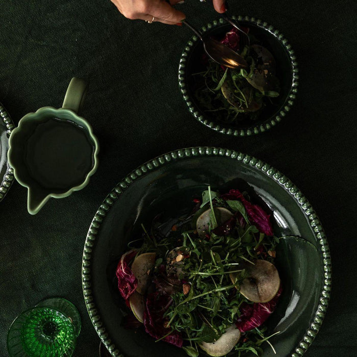 Welkom in een wereld van kunstzinnig tafelen: Daria grote schaal 35cm Moss van PotteryJo uit Stockholm! Dit diepe bord is met de hand gemaakt van gerecyclede klei en zal je eetervaring zeker verbeteren. Het heeft de perfecte vorm voor een ruime portie van je favoriete pastagerecht en andere maaltijden zoals fruitsalades of desserts die iedereen aan tafel zullen plezieren. Gedecoreerd met een prachtig reliëf geïnspireerd op de cycli van het plantenleven, voegt het een elegant vleugje natuur toe aan elke omgeving. Om nog meer flair toe te voegen, kun je dit bord combineren met ander PotteryJo servies uit de Daria collectie in verschillende unieke kleuren - voor een echt persoonlijk tintje dat nergens anders te vinden is! Of je nu een liefhebber van eten bent, een designkenner, of gewoon de beste tafellook wilt, grijp naar onze prachtige Daria grote schaal 35cm Moss!