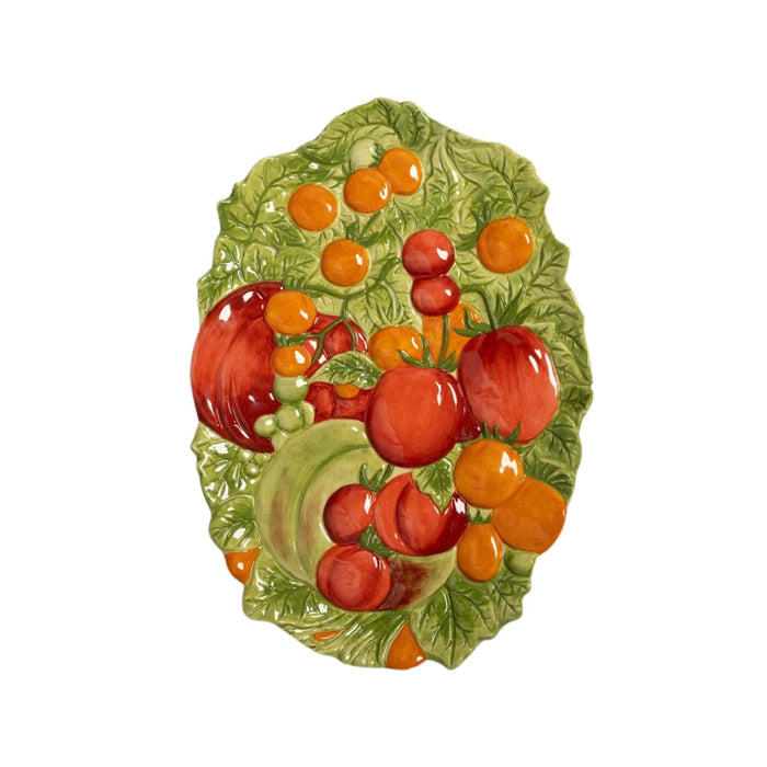 Verleihen Sie Ihrem Tisch einen frischen und farbenfrohen Look mit der schönen Servierschale Legume Tomato 37,5 cm. Diese Servierschale ist mit detaillierten und realistischen Illustrationen verschiedener Tomatensorten verziert, die alle von Hand gemalt wurden, um ihre natürliche Schönheit perfekt einzufangen. Sie ist ideal für die stilvolle Präsentation von Salaten, Pasta oder Vorspeisen und verbindet mühelos Funktionalität mit einem verspielten und künstlerischen Design. Ganz gleich, ob Sie ein sommerliches Grillfest veranstalten oder einfach nur eine Mahlzeit unter der Woche aufpeppen wollen, diese Schale ist garantiert ein Blickfang auf dem Tisch. Kombinieren Sie sie mit anderen Artikeln aus der Legume-Kollektion, um eine lebendige und stimmige Tischdekoration zu schaffen, die Ihre Gäste in Erstaunen versetzen wird.