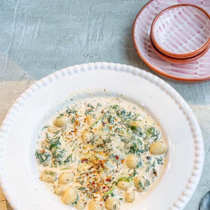Zoek je een elegante en stijlvolle manier om soep of pasta op te dienen? Zoek niet verder dan het Daria soepbord 26cm Cotton White Shiny! Dit mooie keramische bord met reliëf is perfect voor elke gelegenheid, en vormt een mooie aanvulling op elke serviesset. Bestel het jouwe vandaag nog en geniet van exquise eetervaringen met je vrienden en familie.