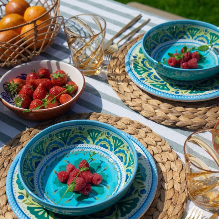 Maak kennis met de London lijn dinerborden - het onbreekbare dinerbord in een set van twee. Geïnspireerd door antiek aardewerk, geven deze melamine borden de verweerde schoonheid en rijke dimensie waar je van houdt, zonder risico op schade! Ze zijn perfect voor buitenkeukens, op boten en rond het zwembad - je hoeft je geen zorgen te maken als ze klappen krijgen van kinderen of onhandigheid. Bovendien zijn ze krasbestendig en vaatwasmachinebestendig, zodat je er steeds weer van kunt genieten. Dus wanneer je een elegante uitstraling wilt op welke plek dan ook - neem dan de onbreekbare London melamine dinerbordenset van twee stuks mee!