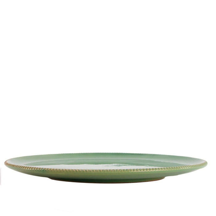 Het dinerbord Pizzolato Jade zal een vleugje elegantie aan je tafel toevoegen, zeker door de kenmerkende Pizzolato rand bekend uit de streek Puglia, Zuid-Italie. Dit handgemaakte Italiaanse keramiek heeft een diameter van 28,5 cm en heeft een mooi reliëfmotief. Perfect voor elke speciale gelegenheid, dit dinerbord zal zeker indruk maken op je gasten.