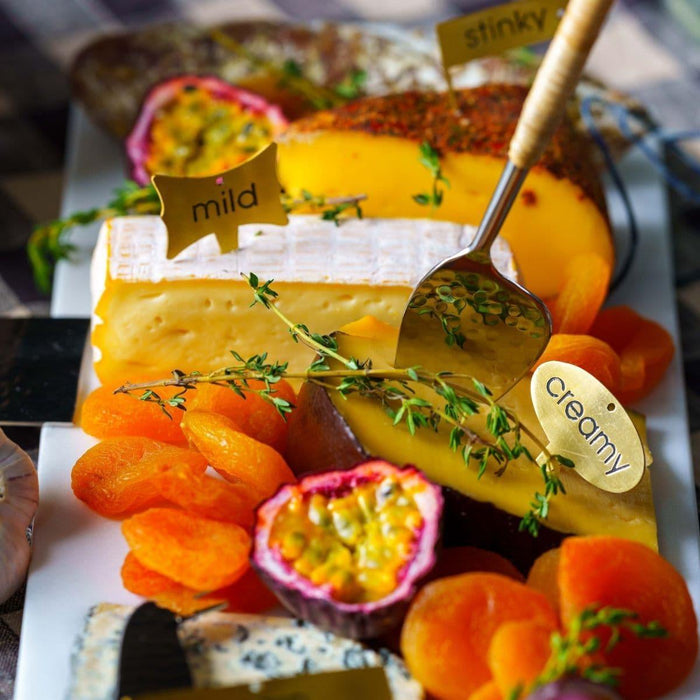Zoek je een unieke manier om je keuken of eetkamer te versieren? Zoek dan niet verder dan deze goudkleurige kaasbordjes! Ze zijn gemaakt van hoogwaardig roestvrij staal, zijn duurzaam en gemakkelijk schoon te maken. Elk bordje is een andere kaassoort, zodat je het bordje kunt kiezen dat het beste bij je smaak past. Ze vormen een perfecte aanvulling op elk kaasplankje of charcuterie schotel. Maar geloof ons niet alleen op ons woord, probeer ze zelf uit en zie!.