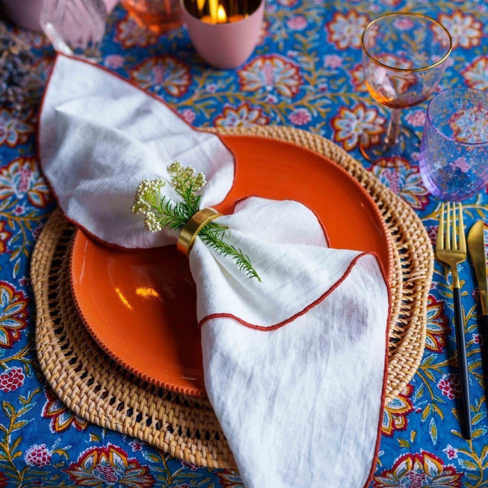 Zoek je iets speciaals om je tafelschikking op te fleuren? Deze mooie Mimi servetten van Maison de Vacances bieden een vleugje elegantie en verfijning. Gemaakt in Frankrijk van een linnen en katoenmix zijn deze servetten geweven met tweekleurig geverfd garen voor een mooie, unieke look. Plus, de rode rand voegt een vleugje verfijning toe. Of je nu gasten ontvangt voor een speciale gelegenheid of gewoon je dagelijkse eetervaring wilt opwaarderen, deze servetten zullen zeker indruk maken. Dus dek de tafel en geniet!