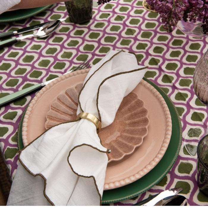 Zoek je iets speciaals om je tafelschikking op te fleuren? Deze mooie Mimi servetten van Maison de Vacances bieden een vleugje elegantie en verfijning. Gemaakt in Frankrijk van een linnen en katoenmix zijn deze servetten geweven met tweekleurig geverfd garen voor een mooie, unieke look. Plus, de kaki rand voegt een vleugje verfijning toe. Of je nu gasten ontvangt voor een speciale gelegenheid of gewoon je dagelijkse eetervaring wilt opwaarderen, deze servetten zullen zeker indruk maken. Dus dek de tafel en geniet!