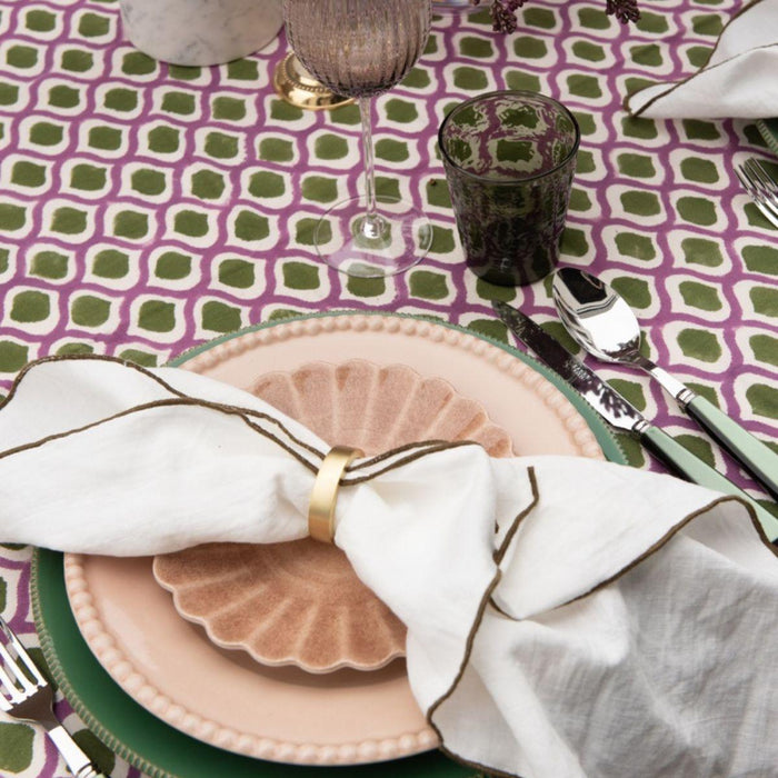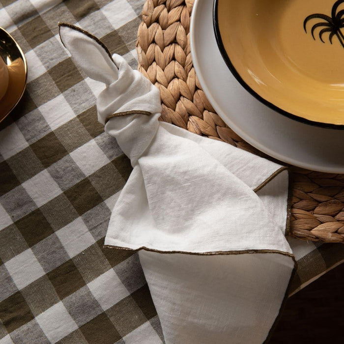 Servet Bourdon Canvas Mimi - Blanc & Bourdon Kaki (set van 6)