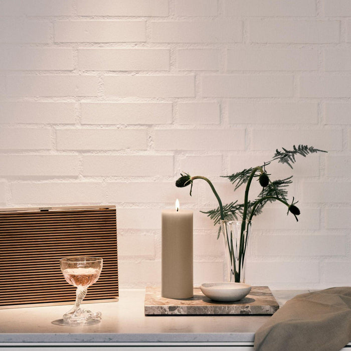 Ontdek de betovering van de Stolpkaars 10cm Ice Latte LED, waar elegantie en gezelligheid samenkomen in jouw huis. Stel je voor, een kaars gemaakt van echt was in die klassieke Ester & Erik kleuren die je kamer omhult met een zachte, warme gloed. Geen zorgen meer over verbrande vingers of het gedoe van het uitblazen van een kaars; dankzij de gepatenteerde ME&E Wick Glow TechnologyTM geniet je van een uiterst realistische LED-vlam die de charme van een echte vlam nabootst zonder het gedoe. Perfect voor een rustige avond thuis of wanneer je dat extra vleugje sfeer wilt toevoegen aan een feestelijke gelegenheid. Met een ingebouwde timer van 6 uur hoef je je nooit zorgen te maken over het vergeten uit te doen - hij doet het gewoon voor je, of je kunt het zelf handmatig regelen. Het strakke design past naadloos in elke interieurstijl en tilt de uitstraling van elke ruimte naar een hoger niveau. En terwijl het de veiligheid van LED biedt, behoudt het de traditionele uitstraling van een echte kaars, waardoor het een ideale keuze is voor binnenshuis gebruik. Haal die warme, uitnodigende ambiance in huis die elke gast het gevoel geeft speciaal te zijn – met de Stolpkaars 10cm Ice Latte LED, waarbij gezelligheid en verfijning hand in hand gaan.