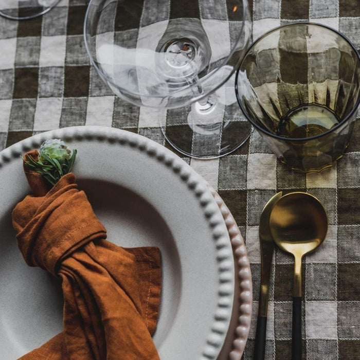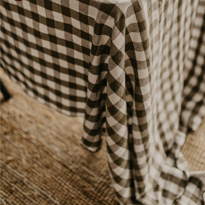 Tafelkleed Bourdon Canvas Mimi Vichy - Vichy Kaki & Bourdon Noir 145x350cm