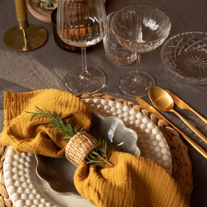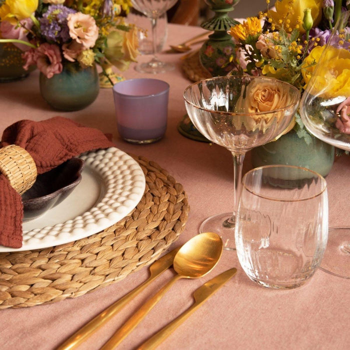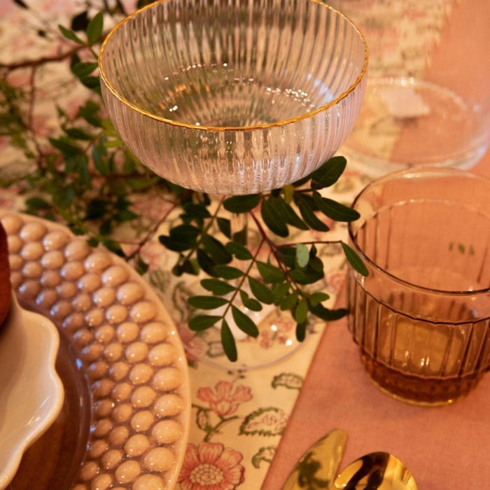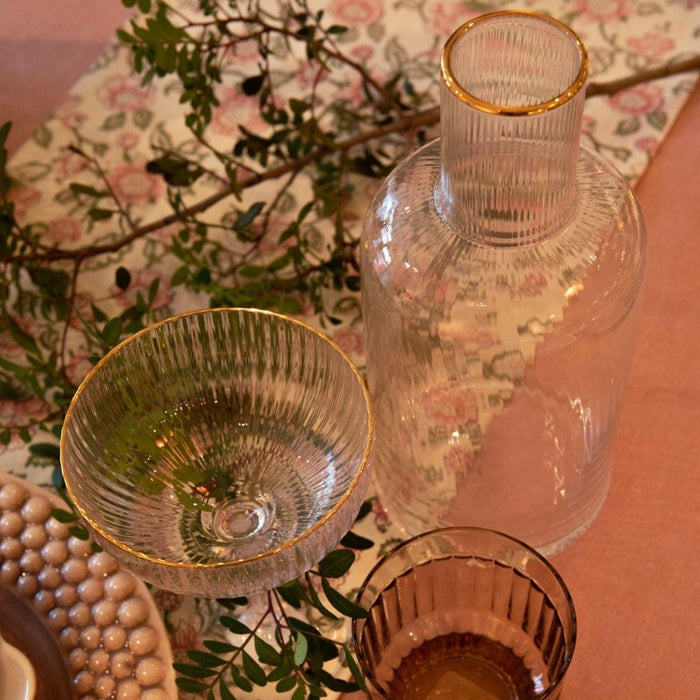 Begin je avond sprankelend met deze exquise champagneglazen Palermo met goudkleurige rand (set van 4). Het prachtige, gebogen silhouet van het glas is perfect om van je favoriete cocktails of drankjes te genieten. Het elegante gecanneleerde ontwerp met een fijne gouden rand geeft het glas een mooie vintage uitstraling die ook aansluit bij de huidige trends. De fijne facetten van het glas zullen het licht en de inhoud op de mooiste manier weerkaatsen. Of je nu feestelijke cocktails serveert of van een dessert geniet, deze champagneglazen Palermo gold rim (set van 4) zullen zeker wat glans aan je avond geven.