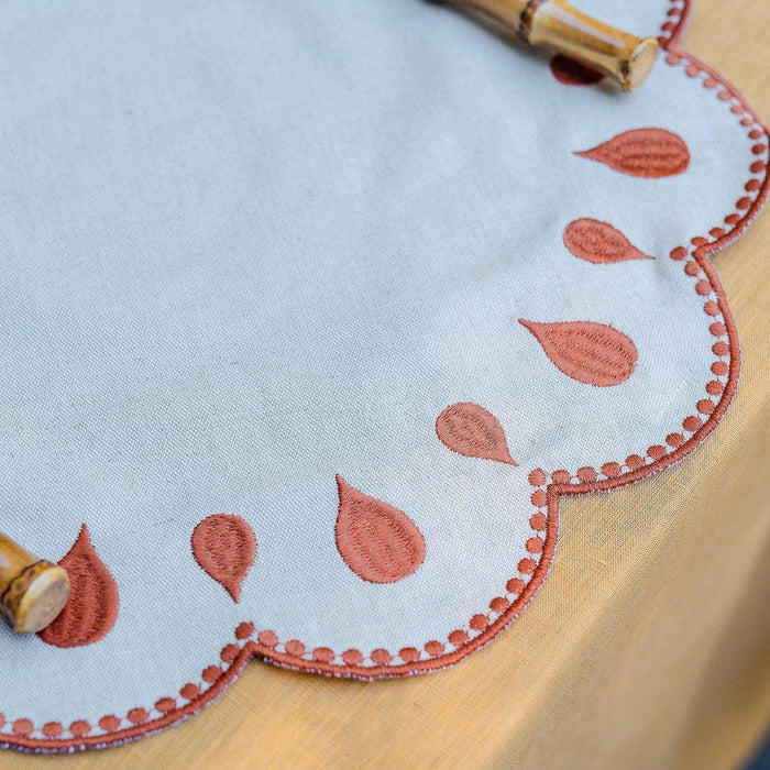 Klaar om je eettafel om te toveren tot een echte blikvanger? Met onze placemat Gotas terracotta van 40cm breng je moeiteloos stijl en elegantie in huis. De joie de vivre van zonnig terracotta ontmoet het verfijnde beige in een symfonie van kleur die jouw culinaire presentaties extra flair geeft. Je hoeft geen expert te zijn om te weten dat details het verschil maken. Dus of je nu een intieme brunch host of een uitbundige tuinparty, deze placemats tillen jouw gastvrijheid naar een nieuw niveau. Hun modern design met speelse golven is dé manier om jouw liefde voor esthetiek te tonen. En het mooiste? Ze zijn vervaardigd uit een mix van katoenbasis en polyesterdraad die niet alleen oogstrelend is, maar ook oh zo praktisch. Gemorst? Geen paniek! Even wassen op maximaal 30 graden, laten luchtdrogen, lichtjes strijken of naar de stomerij brengen, en ze zijn weer klaar voor de volgende ronde van jouw gastvrije avonturen. Combineer ze met de Gotas servetten voor die finishing touch die zegt: "Ik weet wat ik doe". Gemaakt met liefde in Portugal, deze placemats zijn jouw geheime ingrediënt voor een onvergetelijke ambiance. Voel je de bries al van een warme, mediterrane avond? Dat is de belofte van onze placemat Gotas terracotta. Laat je tafel spreken met meer dan alleen heerlijk eten; laat het een verhaal vertellen van stijl, comfort en dat onmiskenbare thuisgevoel. Wat wacht je nog op? Nodig de zon gewoon uit aan tafel!