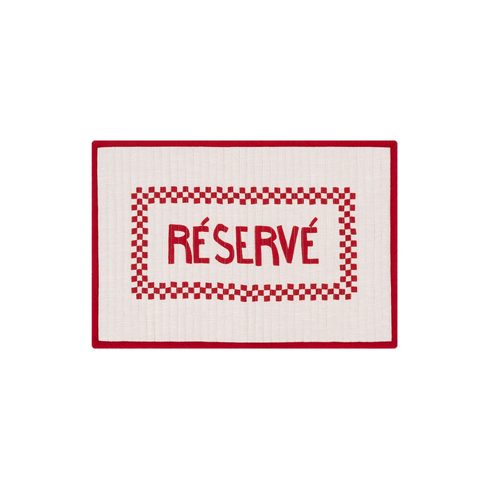Met de Placemat Réservé geef je jouw eettafel direct een luxe uitstraling die je gasten nooit zullen vergeten. Stel je voor hoe deze stijlvolle placemat, wit met een subtiel ronde rand en 'Réservé' sierlijk gedrukt in het midden, jouw tafeldekking naar een hoger niveau tilt. Met een afmeting van 51x31 cm is hij perfect geschikt voor zowel een uitgebreid diner als een casual lunch. Gemaakt van hoogwaardig katoen voelt hij zacht aan en geeft hij een verfijnde, warme sfeer aan elke maaltijd. Niet alleen praktisch, maar ook een echte blikvanger die je tafel verandert in een uitnodigend tafereel dat straalt van elegantie. Voeg een vleugje exclusiviteit toe aan je dinerervaring en laat zowel je gerechten als je gezelschap stralen met de Placemat Réservé.