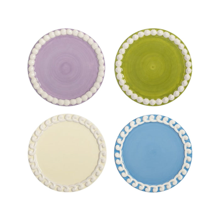 Deze vier betoverende gebaksbordjes in snoepjesachtige pasteltinten brengen instant vrolijkheid naar jouw tafel! De speelse werveltjes doen denken aan verse slagroom die net uit de spuitzak komt - je krijgt er spontaan zin in taart van. Perfect voor die momenten waarop je gasten wilt verrassen met een prachtige presentatie van jouw favoriete gebak, petit fours of andere kleine lekkernijen. De zachte kleuren passen bij elke gelegenheid, van een intieme koffiedate tot een feestelijk afternoon tea-moment. Stel je voor hoe deze schattige bordjes jouw desserts laten stralen en zorgen voor die extra portie gezelligheid waar iedereen van houdt. Ze zijn niet alleen mooi om naar te kijken, maar ook heerlijk praktisch in gebruik - ideaal voor het serveren van die ene perfecte punt cheesecake of die zelfgemaakte brownies waar je zo trots op bent. Met dit viertal creëer je moeiteloos die warme, uitnodigende sfeer waar mensen graag terugkomen.