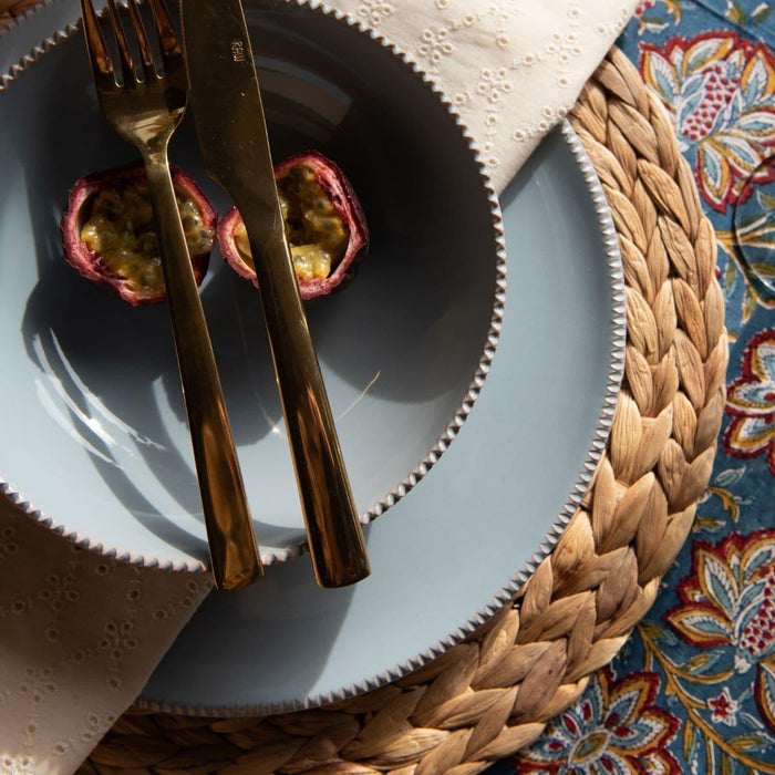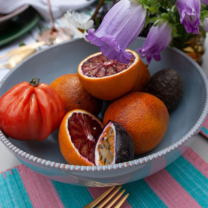 Deze kom Pizzolato Powder Blue is een echt kunstwerk! Het is handgemaakt in Italië door de ambachtslieden van Enza Fasano. Het mooie glazuur en de ingewikkelde details, met name de kenmerkende Pizzolato rand, maken van deze kom een echte knaller. Hij zou een perfecte aanwinst zijn voor je keuken of eetkamer, en je kunt er allerlei gerechten in serveren - van salades tot pasta tot desserts. Je zult dol zijn op deze prachtige schaal!