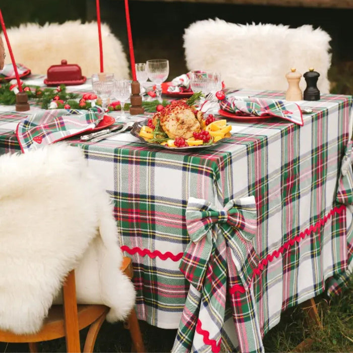 Transformeer je eetkamer in een winters wonderland met dit prachtige geruite tafellinnen Highland Snow in formaat 170x360cm. De zachte sneeuwwitte tint met subtiele ruitjes brengt een serene elegantie naar je tafel die perfect aansluit bij zowel intieme diners als uitgebreide familiefeesten. Het 100% katoenen weefsel voelt heerlijk zacht aan onder je vingers en creëert die warme, uitnodigende sfeer waar gasten zich direct thuis voelen. Of je nu een spontane lunch organiseert of een feestelijke kerstbrunch plant, dit tafellaken vormt de perfecte basis voor onvergetelijke momenten. De royale afmetingen maken het geschikt voor lange tafels, zodat iedereen kan aanschuiven voor die gezellige gesprekken die tot diep in de nacht doorgaan. Het praktische katoen is eenvoudig te onderhouden - gewoon in de wasmachine op 40 graden met een mild wasmiddel en je bent klaar voor je volgende culinaire avontuur. De tijdloze ruitjesprint geeft je tafel die authentieke charme die nooit uit de mode raakt, terwijl de neutrale kleur moeiteloos combineert met jouw servies en decoratie. Dit is meer dan alleen een tafelbedekking - het is de start van verhalen die nog jarenlang verteld worden.