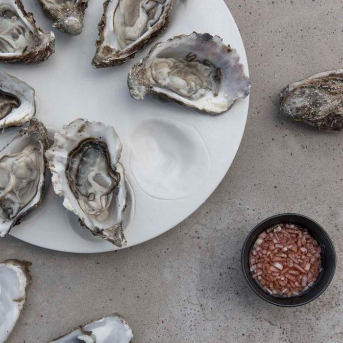 Welkom bij de serveerschaal Oyster 27cm! Deze heerlijke serveerschaal is de perfecte partner voor oesterfans overal. Met een handig formaat van 27 cm in diameter en 2 cm hoog heb je genoeg ruimte om ieders favoriete zeevruchtendelicatesse te serveren. En je gasten hoeven niet meer te proberen hun oesters te balanceren op de kwetsbare schelpen: deze stevige serveerschaal kan elke overloop aan. Bovendien is het een geweldige aanvulling op elk diner of bijeenkomst. Met zijn aantrekkelijke ontwerp kun je gemakkelijk een stijlvolle en uitnodigende tafel dekken; een waar je gasten zeker zullen genieten van elke zeevruchtentraktatie die ze eruit halen. En met behulp van deze opvallende en toch praktische serveerschaal kun je genieten van die opvallende buffetpresentatie zonder je zorgen te hoeven maken over morsen of bijhouden welke schelp van wie is. Dus als je iets speciaals nodig hebt voor het uitdelen van heerlijke oesters, zoek dan niet verder dan de serveerschaal Oyster 27cm! Wat wil een oesterliefhebber nog meer?