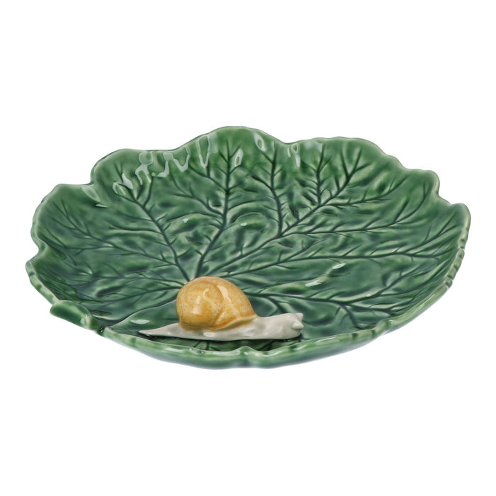 Serveerschaal groen koolblad met slak 29cm