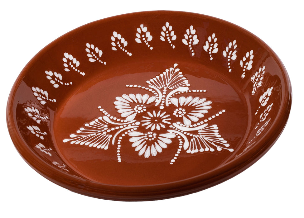 Geef je tafel een verfijnde touch met deze schitterende terracotta schaal, handgemaakt in Portugal en beschilderd met een elegant wit patroon. Elke schaal is uniek en straalt ambachtelijk vakmanschap uit; perfect voor wie houdt van authentiek en met zorg vormgegeven servies. Heb je vrienden of familie te gast? Deze schaal brengt een vleugje authenticiteit en stijl naar je tafeldecoratie, of je hem nu vult met kleurrijke salades, knapperig vers brood of heerlijk sappig fruit. De aardewerk schaal voelt robuust aan, maar straalt tegelijkertijd een delicate charme uit die bij iedere gelegenheid past. Omdat hij met de hand beschilderd is, heeft elke schaal een subtiel anders patroon, wat hem nóg specialer maakt. Hoewel de schaal de perfecte blikvanger op tafel is, raden we aan om hem met de hand af te wassen om de prachtige details en kwaliteit te behouden. Voeg een vleugje Portugese allure en verfijning toe aan jouw dinerervaring met deze stijlvolle witterracotta schaal van 25x25 cm – de perfecte balans tussen functionaliteit en esthetiek!