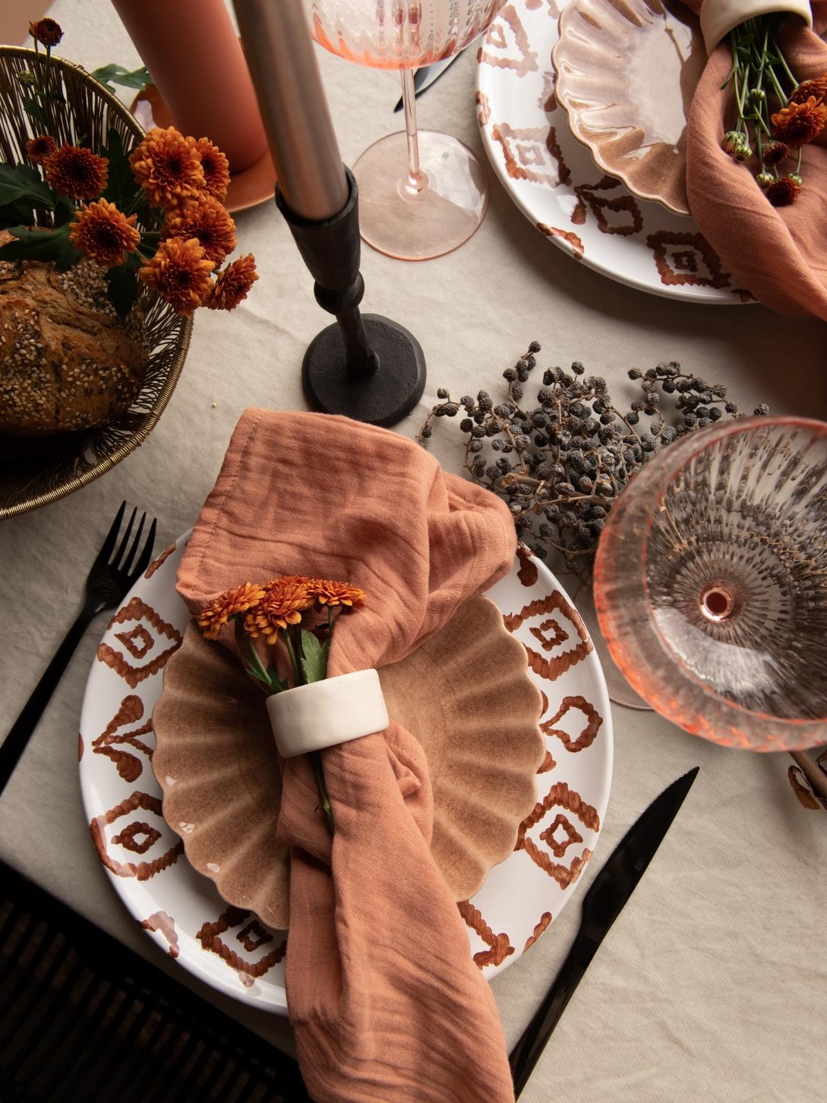 On this table, the ton sur ton method is well implemented and you can see exactly its reinforcing effect here. The tablecloth is the eye-catcher and also immediately determines the color scheme of the entire table.