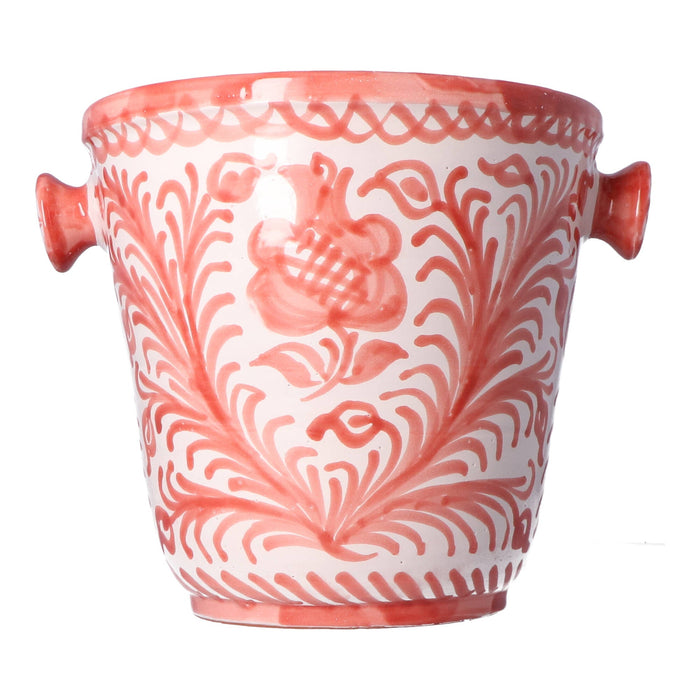 Jij verdient een stijlvolle toevoeging aan je tafel, en de Champagnehouder Pomegranate Coral van 21 cm is precies dat. Elk exemplaar is met de hand vervaardigd en beschilderd in Spanje, wat elke houder uniek maakt en een vleugje ambachtelijke verfijning toevoegt aan jouw interieur. De binnen- en buitenkant zijn voorzien van prachtige patronen en verfijnde details in een zachte, warme kleur die jouw champagneflessen subtiel maar elegant presenteert. Met een diameter van 22,5 cm en een hoogte van 21 cm is deze houder ruim genoeg om je mooiste bubbels in de spotlight te zetten. De handbeschilderde afwerking betekent dat handwas wordt aanbevolen, zodat de intense kleuren en unieke details lang behouden blijven. Of je nu vrienden ontvangt voor een intieme borrel of een bruisend diner organiseert, deze champagnekoeler combineert functionaliteit met stijl en maakt van elke gelegenheid iets bijzonders. Voeg een vleugje Spaanse klasse toe aan jouw tafel en maak een blijvende indruk op jouw gasten.