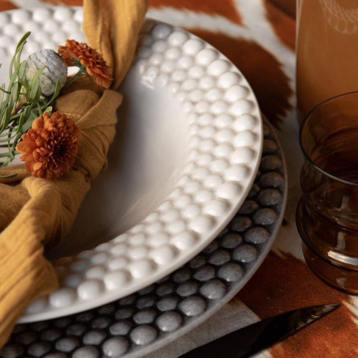 Dit dinerbord is de perfecte manier om te pronken met je culinaire vaardigheden! De parelrand en de grey kleur geven vast en zeker een vleugje elegantie aan elke tafelschikking. Plus, het handgemaakte en handbeschilderde ontwerp maakt elk exemplaar uniek. Dus roep je vrienden en familie bij elkaar voor een etentje dat ze niet snel zullen vergeten!