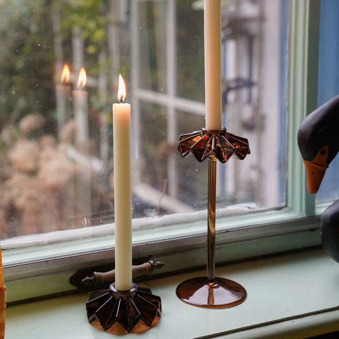 Breng warmte en karakter in jouw interieur met de Frilly kaarsenhouder in diepbruine tinten - een echte blikvanger die elke ruimte instant gezellig maakt. Deze speelse glashouder van 11 cm heeft een uniek frivool detail dat hem onderscheidt van gewone waxinelichtjes-standaards en theelichthouders. Gemaakt van duurzaam borosilicaatglas dat niet alleen prachtig oogt, maar ook bestand is tegen de warmte van brandende kaarsen. Met zijn compacte formaat van 11 x 11 x 10 cm past hij perfect op jouw eettafel, vensterbank of bijzettafel zonder veel ruimte in te nemen. Of je nu een romantisch diner plant, een ontspannen avond thuis wilt creëren of gewoon wat extra sfeerverlichting zoekt - deze bruine kandelaar zorgt voor die magische gloed die elke ruimte transformeert. De donkere kleur contrasteert mooi met het zachte kaarslicht en past bij zowel moderne als klassieke interieurs. Perfect voor waxinelichtjes of kleine kaarsen, maar onthoud wel dat brandende kaarsen nooit zonder toezicht mogen worden gelaten en niet helemaal mogen opbranden. Deze glazen houder is niet zomaar een accessoire - het is jouw geheime wapen voor instant gezelligheid en die warme, uitnodigende sfeer waar iedereen zich thuis voelt.