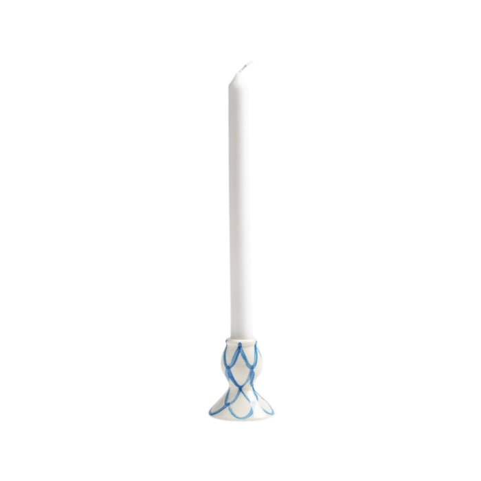 Met de Kandelaar Sirène in blauw voeg je een vleugje onderzeese elegantie toe aan je interieur. Deze handbeschilderde kandelaar heeft een geometrisch patroon, geïnspireerd op de textuur van vissenschubben, wat zorgt voor een subtiele beweging en charme in je kamer. Deze kaarsenstandaard is een verfijnde mix van vakmanschap en speelse details. De diepblauwe kleur doet denken aan de oceaan en brengt een gevoel van rust en verfijning in je huis. Perfect om te combineren met andere stukken uit je interieur, of je nu een romantisch diner organiseert of gewoon een gezellig hoekje wilt creëren. Deze kandelaar is niet alleen een houder voor je kaarsen, maar ook een prachtig decoratiestuk dat je tafel direct opfleurt. Laat je inspireren door de schoonheid van de zee en geef je huis een unieke, persoonlijke sfeer.