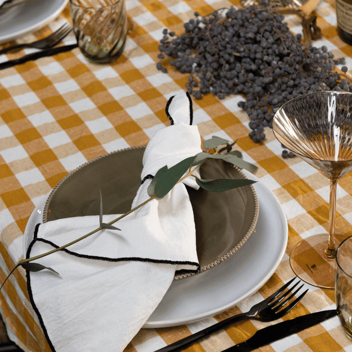Tafelkleed Bourdon Canvas Mimi Vichy - Vichy Ocre & Bourdon Noir 145x300cm