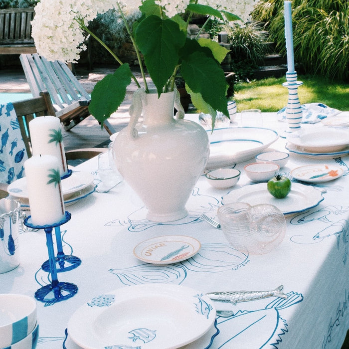 Breng de Franse zomer naar jouw tafel met het Tafelkleed Soupe Bouillabaisse 255x150cm. Gemaakt van 100% biologisch katoen straalt dit tafelkleed een authentieke charme uit die je direct doet denken aan een sfeervol diner langs de Côte d’Azur. Het verfijnde patroon, geïnspireerd door de klassieke Franse vissoep, voegt een vleugje culinaire romantiek toe aan elke maaltijd, van een gezellige lunch in de tuin tot een elegant diner met vrienden. Combineer het met de bijpassende servetten en je bent helemaal klaar om indruk te maken op je gasten. Praktisch, mooi en duurzaam — je kunt het eenvoudig wassen op 30°C fijne was. Even een strijkbeurt op middellage temperatuur en het ziet er weer perfect uit, klaar voor jouw volgende feestje. Of je nu een doorgewinterde gastvrouw bent of gewoon graag mooie momenten creëert rond de eettafel, dit tafelkleed is jouw geheim voor een stijlvolle en ontspannen sfeer.