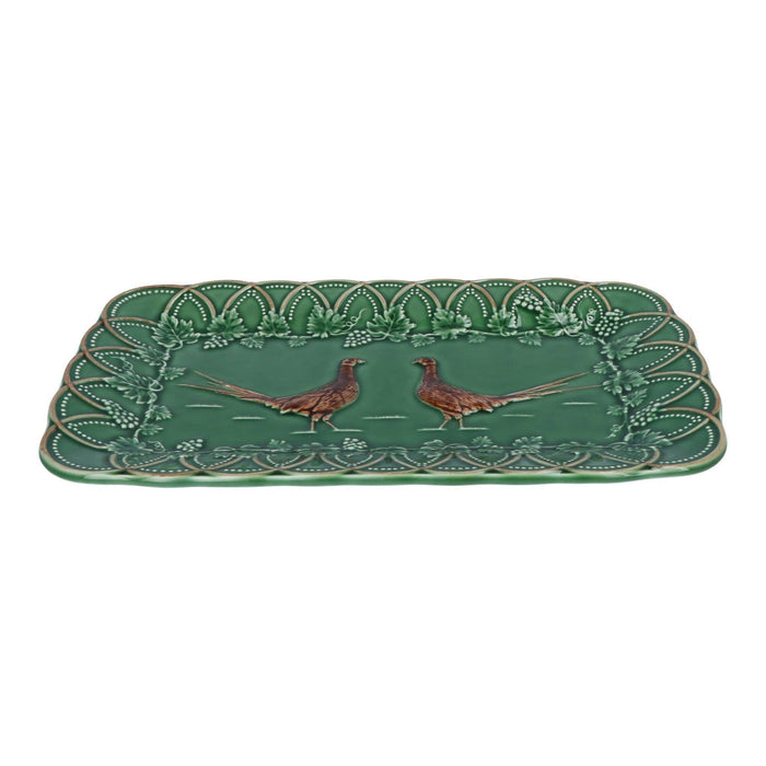 Ontdek de charme van de Serveerplateau Fazant 34cm en breng een vleugje elegantie naar je tafel. Dit keramische serveerplateau is een ware blikvanger, prachtig versierd met een afbeelding van twee fazanten die sierlijk tegen een groene achtergrond afsteken. Of je nu een gezellig diner organiseert of een bijzondere gelegenheid viert, dit plateau zorgt ervoor dat je gerechten stijlvol gepresenteerd worden. Denk aan versgebakken broodjes, smakelijke tapas of misschien wel een heerlijk kaasplankje. De verfijnde details en het tijdloze ontwerp maken het niet alleen functioneel, maar ook een decoratief kunstwerk in je keuken of eetkamer. Je gasten zullen zeker onder de indruk zijn en je stijl van presenteren bewonderen. Het plateau is perfect voor wie graag een persoonlijke en warme sfeer creëert bij het ontvangen van vrienden en familie. Zonder veel poespas voeg je een stukje klasse toe aan elke gelegenheid. Zet dus je beste beentje voor en laat je innerlijke gastheer of gastvrouw stralen met deze betoverende serveerplateau.
