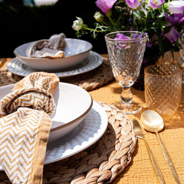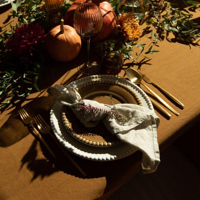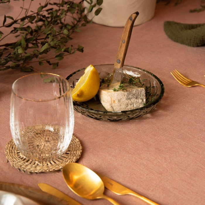 Als je een compleet bestek zoekt dat elegantie en stijl uitstraalt, kijk dan niet verder dan de Solo matgouden 5-delige bestekset van Cutipol. Deze set is gemaakt van hoogwaardig geborsteld roestvrijstaal en bevat 1 dinervork, 1 dinermes, 1 dinerlepel, 1 dessertlepel en 1 dessertvork (deze laatste is niet afgebeeld) - perfect voor elke formele of casual eetgelegenheid. Dankzij de lichte en evenwichtige vormgeving is de Solo bestekset een plezier om te gebruiken en zal hij helpen je tafelsetting tot zijn recht te laten komen. Of je nu een etentje organiseert of rustig thuis eet, deze voortreffelijke bestekset geeft je zeker dat extra vleugje klasse.