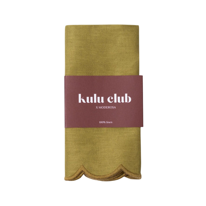 Servetten 100% linnen scallop olijfgroen 40x40cm (set van 2)