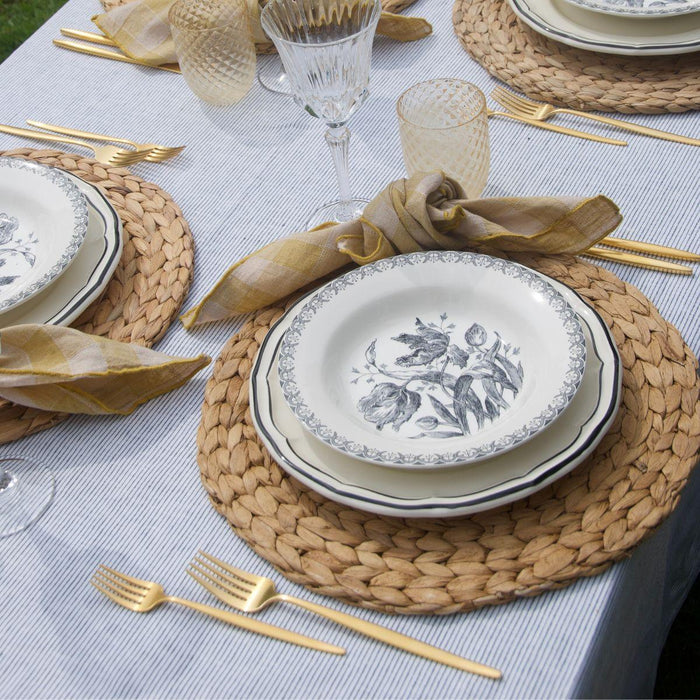 Duik diep in de wereld van ongeëvenaarde elegantie met het Dinerbord Filet Manganese (set van 4) van Gien - waar elke maaltijd verandert in een verfijnde belevenis. Ontworpen met een hart voor traditie en oog voor detail, omarmt deze set de rijke geschiedenis en het vakmanschap dat kenmerkend is voor het Franse merk Gien. Stel je voor hoe deze prachtige borden als het toneel dienen voor jouw culinaire creaties, elk stuk een meesterwerk op zich, zorgvuldig vervaardigd door de handen van de meesteraardewerkmakers in Gien. Met een samenstelling die de essentie van 26 zorgvuldig geselecteerde componenten en eeuwenoude kennis samenbrengt, beloven deze dinerborden niet alleen een lust voor het oog te zijn maar roepen ze ook warme, sensuele emoties op bij elke aanraking. Laat je meeslepen door de levendige kleuren en betoverende designs die kenmerkend zijn voor Gien, terwijl je je gasten verrast met een tafelschikking die getuigt van ware Franse verfijning en levenskunst. Of je nu een intiem diner organiseert of een feestelijk banket, de Dinerbord Filet Manganese set tilt elke gelegenheid naar een hoger niveau van elegantie en gezelligheid. Welkom in de wereld van Gien, waar elk dinerbord een verhaal vertelt van traditie, schoonheid en het goede leven. Jouw tafel verdient dit pronkstuk van ongekende klasse.