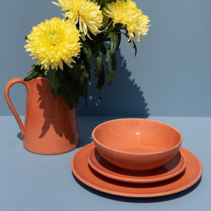Het dinerbord Pizzolato Coral zal een vleugje elegantie aan je tafel toevoegen, zeker door de kenmerkende Pizzolato rand bekend uit de streek Puglia, Zuid-Italie. Dit handgemaakte Italiaanse keramiek heeft een diameter van 28,5 cm en heeft een mooi reliëfmotief. Perfect voor elke speciale gelegenheid, dit dinerbord zal zeker indruk maken op je gasten.
