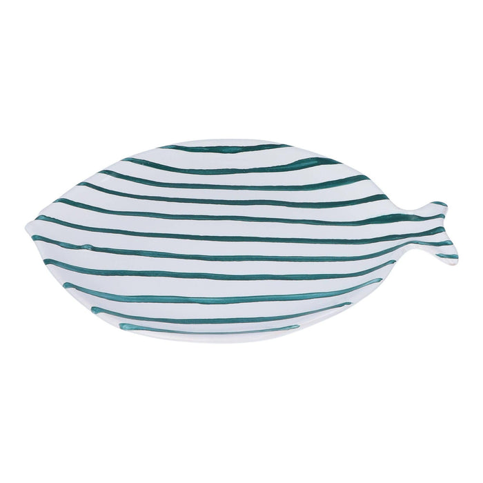 Zoek je een uniek en one-of-a-kind dinerbord om persoonlijkheid aan je tafelschikking toe te voegen? Zoek niet verder dan dit bord in de vorm van een vis, in prachtige combi van wit met groenblauw! Dit bord van 32 cm lang en 24 cm breed is met de hand beschilderd door bekwame ambachtslieden in Italië en heeft een prachtige kleurencombinatie en een ingewikkeld ontwerp. Of je nu een vleugje elegantie aan je eetkamer wilt toevoegen of je gasten tijdens je volgende etentje wilt imponeren, dit bord zal het zeker doen!