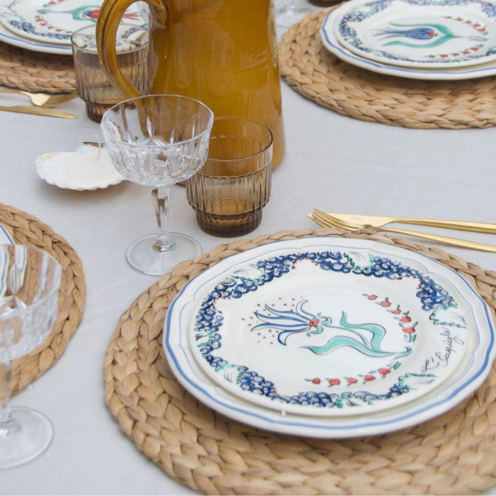 Stel je voor dat je elke ochtend begint met een vleugje Franse charme en verfijning, rechtstreeks uit de prestigieuze ateliers van Gien. Met het Ontbijtbord assortiment La Favorite (set van 4) til je jouw ontbijt naar een hoger niveau van elegantie en stijl. Elke bord ademt de rijke traditie van Frans vakmanschap, verfijnd door generaties van meesteraardewerkmakers. Deze verzameling van vier unieke ontbijtborden brengt de tijdloze schoonheid van Frankrijk naar jouw tafel, met elk bord dat een eigen verhaal vertelt door zijn unieke tekening. Ervaar de warmte en de sensuele touch van echt aardewerk dat met liefde is vervaardigd, waarbij elk detail zorgvuldig is overwogen om emoties op te roepen en een gastvrije sfeer te creëren. Het assortiment La Favorite is meer dan zomaar servies; het is een viering van de Franse levenskunst, gevangen in levendige kleuren en betoverende patronen. Of je nu kiest voor een rustige ochtend alleen of een levendige brunch met dierbaren, deze borden voegen een onmiskenbare flair toe die je dagelijkse routine verandert in een bijzonder moment. Welkom in de wereld van Gien, waar elk bord niet alleen dient voor het serveren van maaltijden, maar ook symbool staat voor een levensstijl van elegantie, verfijning en joie de vivre. Ontdek de magie van Frans vakmanschap en maak van elke maaltijd een herinnering om te koesteren.