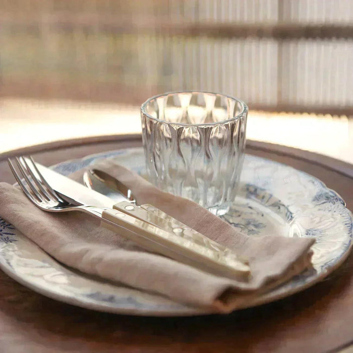 Maak van je eettafel iets om over te tafelen met de Bistrot Uni bestekset 4-delig Mastic! We wilden de geest van je favoriete restaurants en cafetaria's vangen, terwijl we die moderne flair toevoegen die elke maaltijd bijzonder maakt. Met glanzende afwerking is dit bestek ontworpen om zowel traditioneel als eigentijds te zijn - een klassieke combinatie voor elke keuken! Bovendien voegen de klinknagels een subtiele elegantie toe, waardoor ze even aantrekkelijk als functioneel zijn. De set bestaat uit een lepel, een vork, een mes en een dessertlepel - maak gerechten waar je alleen maar van kunt dromen vanuit je eigen huis! Klaar? Laten we savvy worden in de keuken met de fantastische 4-delige besteset Bistrot Uni Mastic.