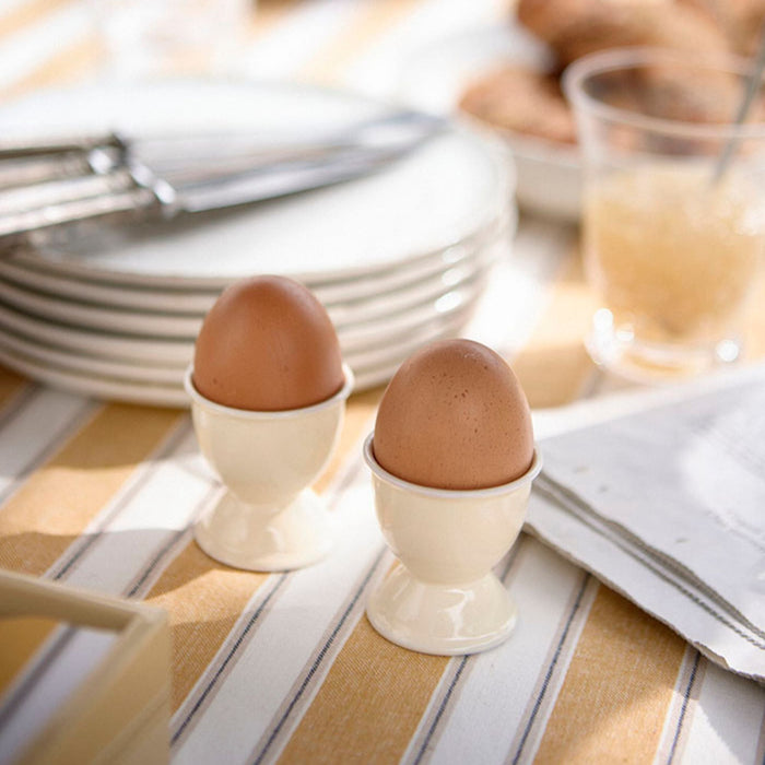 Met de Eierdopje Alora Cream til jij je ontbijttafel naar een hoger niveau van elegantie en charme. Met een hoogte van 5,5 cm biedt dit stijlvolle item plaats aan jouw perfect gekookte eitje, terwijl het metalen ontwerp met een verfijnde emaille laag zorgt voor een vleugje gezelligheid in jouw keuken. De zachte beige tint past moeiteloos bij elke tafelschikking en brengt een warme, uitnodigende look. Jij hoeft je geen zorgen te maken over schoonmaken – even afnemen met een vochtige doek en hij straalt weer als nieuw. Het Alora eierdopje is niet zomaar een gebruiksvoorwerp, het is een klein detail waarmee jij jouw ochtendritueel nét dat beetje extra kunt geven. Perfect als cadeau voor jezelf of voor iemand die geniet van de kleine momenten in het leven.