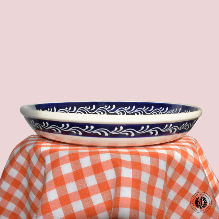 Voeg een vleugje Mediterrane charme toe aan je eettafel met de Serveerschaal Flor Azul 37,5 cm. Deze prachtige, handgemaakte schaal uit Spanje is een echte eyecatcher voor elke gelegenheid – van een uitgebreid diner met vrienden tot een ontspannen ontbijt voor twee. Met zijn levendige blauwe tinten en elegante patroon presenteer je jouw gerechten alsof ze zo uit een kookmagazine komen. Perfect om salades, tapas of vers fruit in te serveren, en wanneer hij leeg is, steelt hij ook als decoratief stuk in je keuken de show. Elk exemplaar is uniek, met de hand gemaakt en net even anders, wat betekent dat je meer dan een schaal koopt – je haalt een stukje authentiek vakmanschap in huis. Bovendien is hij groot genoeg om al je culinaire creaties royaal te presenteren, maar compact genoeg om makkelijk op te bergen. Deze schaal combineert moeiteloos stijl en functionaliteit, en als je wilt variëren, zijn er nog zes andere ontwerpen om mee te mixen en matchen. Maak van elke maaltijd een feestje en laat jouw tafel stralen met de Flor Azul serveerschaal!