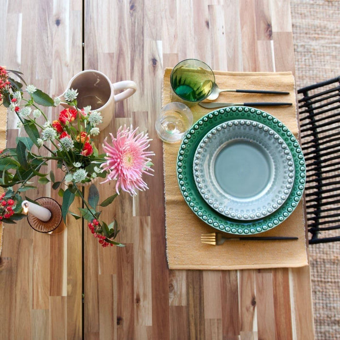 Maak kennis met het Daisy dinerbord in de kleur Forest! Dit mooie, handgemaakte bord is perfect voor elke tafelschikking. Het madeliefjesmotief in reliëf is opvallend en geeft je maaltijd een vleugje elegantie. Bovendien past het bord perfect bij onze andere Daisy borden uit onze collectie. Dus waarom zou je vandaag je tafel niet opfleuren met het Daisy dinerbord?