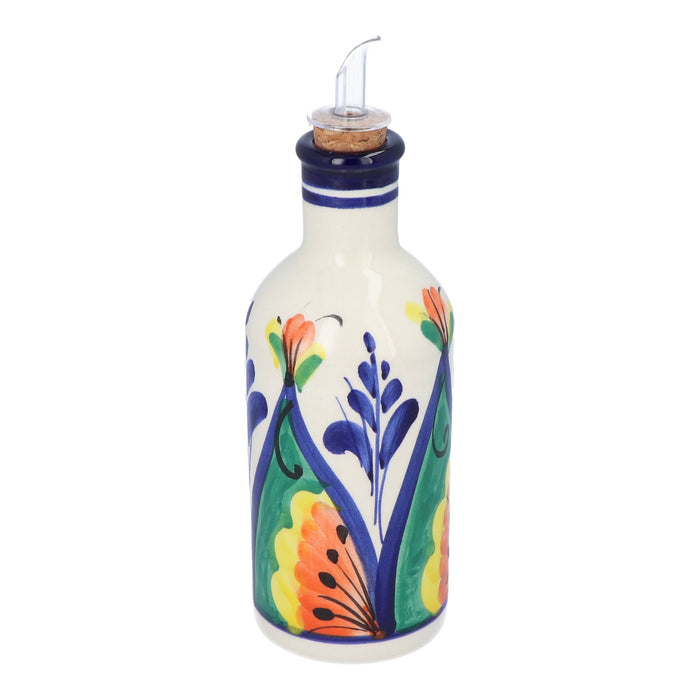 Geef je tafel en keuken meer sfeer en stijl met de Olijfoliefles Las Flores 22cm. Deze prachtig ontworpen olijfkan uit de Las Flores collectie combineert functionaliteit met elegantie en wordt gegarandeerd een blikvanger op jouw eettafel. Met een afmeting van 22 x 7 cm is hij perfect in balans tussen subtiel en opvallend. Elk stuk is met de hand gemaakt, wat betekent dat jij een uniek product in huis haalt dat nét dat beetje anders kan zijn dan de foto—en dat maakt het juist zo bijzonder. Gebruik hem om je favoriete olijfolie te presenteren of gewoon als decoratief element; hoe je hem ook gebruikt, hij voegt een vleugje warmte en karakter toe aan je culinaire momenten.