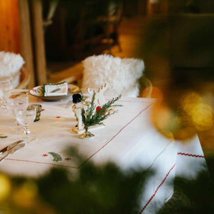 Ontdek de magie van kerst met het Tafelkleed Merry Red 170x360cm, jouw ultieme metgezel voor feestelijke diners. Stel je voor dat je een tafel dekt met een vleugje natuurlijke elegantie, dankzij de fijne mix van 60% katoen en 40% linnen. Het subtiele borduurwerk voegt een artistieke flair toe die je gasten zeker zal betoveren. De rijke rode kleur vangt de essentie van de feestdagen en creëert een warme, uitnodigende sfeer. Dit kleed is niet alleen stijlvol maar ook praktisch; was het eenvoudig op 40°C met een mild detergent, zodat je je geen zorgen hoeft te maken over morsen of knoeien. Of je nu een intiem diner organiseert of een groot familiefeest, met dit tafellaken omarm je de fijnste tradities terwijl je een verfijnde uitstraling behoudt. Laat je tafel sprankelen en maak indruk op je geliefden met dit stijlvolle en functionele pronkstuk.