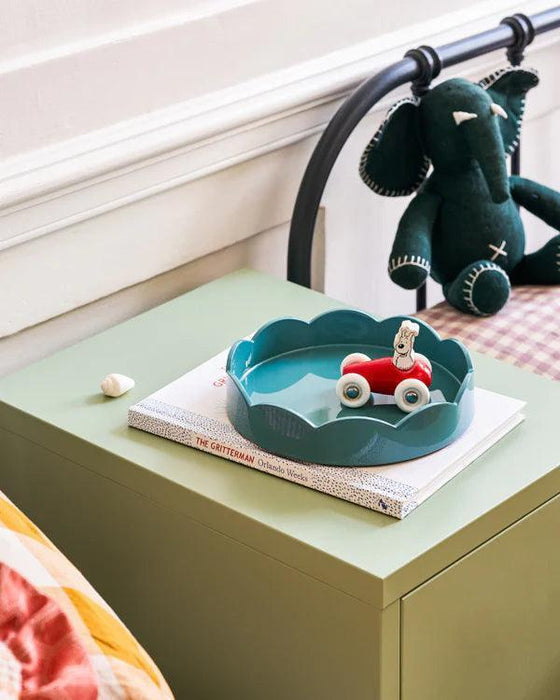 Geef je tafel een vleugje elegantie met de Dienblad Chambray Sint-jakobsschelp rond 20cm. Dit prachtige, ronde dienblaadje in chambrayblauw straalt luxe uit dankzij de afwerking met maar liefst 20 lagen hoogglanslak, stuk voor stuk met de hand gepolijst voor een perfect resultaat. De zwarte satijnen basis, subtiel voorzien van ons logo, voegt een verfijnde touch toe. Met een diameter van 20 cm en een hoogte van 6 cm is dit het ideale formaat om kleine hapjes, sieraden of decoratieve items op een stijlvolle manier te presenteren. Het schoonmaken is eenvoudig – veeg het voorzichtig af met een zachte, vochtige doek. Tip van ons: houd het uit de buurt van direct zonlicht en dompel het niet onder in water, zo blijft het nog jarenlang een pronkstuk in jouw huis. Met de luxe geschenkverpakking is het bovendien een fantastisch cadeau, of gewoon een traktatie voor jezelf. Super chique én functioneel.