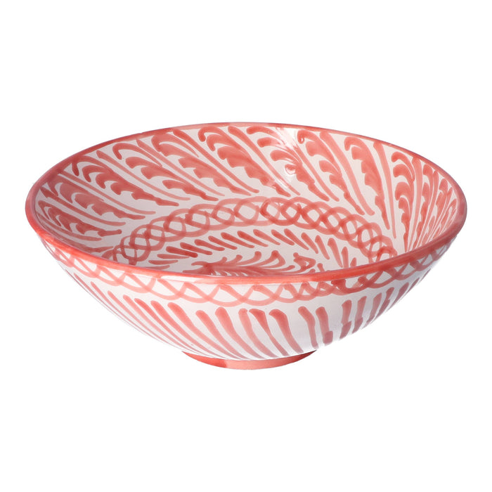 De Schaal Pomegranate Coral 30cm is een echte blikvanger die jouw tafelsetting compleet maakt. Met een doorsnede van 30 cm en een hoogte van 10 cm biedt deze keramieken schaal niet alleen voldoende ruimte voor luxe salades, vers fruit of smaakvolle bijgerechten, maar voegt hij ook een vleugje mediterrane charme toe aan je interieur. Handgemaakt en met liefde beschilderd in Spanje, straalt elke schaal uniek vakmanschap uit. Wat deze schaal extra speciaal maakt, is dat zowel de binnenkant als de buitenkant voorzien is van zachte, handgeschilderde patronen voor een echte mediterraanse uitstraling. Dit zorgt voor een verfijnde uitstraling die perfect past bij zowel een elegant diner als een ontspannen brunch. Om de rijke kleuren en delicate details te behouden, raden we aan om deze kunstzinnige schaal met de hand af te wassen. Geef jouw tafel een stijlvolle en persoonlijke touch met deze unieke creatie en geniet van het samensmelten van functionaliteit en esthetiek in één schitterend stuk.