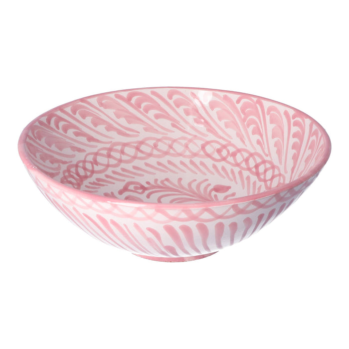 De Schaal Pomegranate roze 30cm is een echte blikvanger die jouw tafelsetting compleet maakt. Met een doorsnede van 30 cm en een hoogte van 10 cm biedt deze keramieken schaal niet alleen voldoende ruimte voor luxe salades, vers fruit of smaakvolle bijgerechten, maar voegt hij ook een vleugje mediterrane charme toe aan je interieur. Handgemaakt en met liefde beschilderd in Spanje, straalt elke schaal uniek vakmanschap uit. Wat deze schaal extra speciaal maakt, is dat zowel de binnenkant als de buitenkant voorzien is van zachte, handgeschilderde patronen voor een echte mediterraanse uitstraling. Dit zorgt voor een verfijnde uitstraling die perfect past bij zowel een elegant diner als een ontspannen brunch. Om de rijke kleuren en delicate details te behouden, raden we aan om deze kunstzinnige schaal met de hand af te wassen. Geef jouw tafel een stijlvolle en persoonlijke touch met deze unieke creatie en geniet van het samensmelten van functionaliteit en esthetiek in één schitterend stuk.