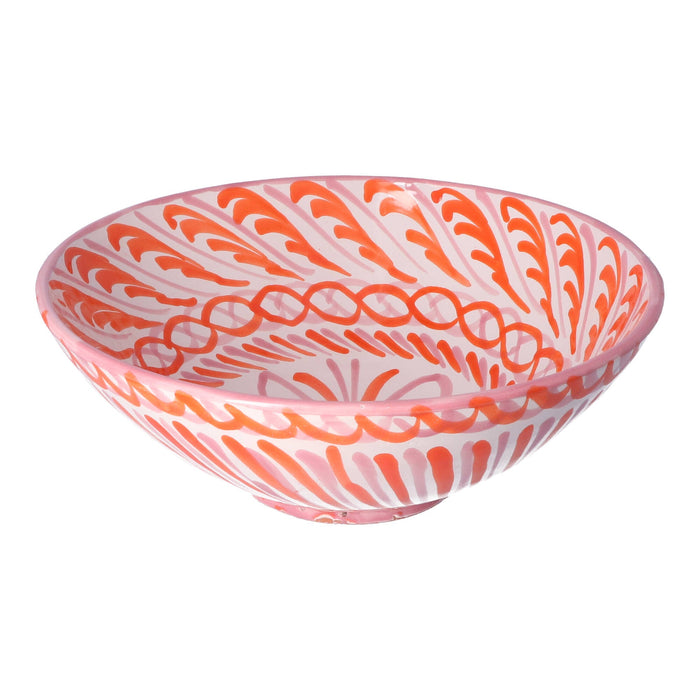 De Schaal Pomegranate Coral 30cm is een echte blikvanger die jouw tafelsetting compleet maakt. Met een doorsnede van 30 cm en een hoogte van 10 cm biedt deze keramieken schaal niet alleen voldoende ruimte voor luxe salades, vers fruit of smaakvolle bijgerechten, maar voegt hij ook een vleugje mediterrane charme toe aan je interieur. Handgemaakt en met liefde beschilderd in Spanje, straalt elke schaal uniek vakmanschap uit. Wat deze schaal extra speciaal maakt, is dat zowel de binnenkant als de buitenkant voorzien is van zachte, handgeschilderde patronen voor een echte mediterraanse uitstraling. Dit zorgt voor een verfijnde uitstraling die perfect past bij zowel een elegant diner als een ontspannen brunch. Om de rijke kleuren en delicate details te behouden, raden we aan om deze kunstzinnige schaal met de hand af te wassen. Geef jouw tafel een stijlvolle en persoonlijke touch met deze unieke creatie en geniet van het samensmelten van functionaliteit en esthetiek in één schitterend stuk.