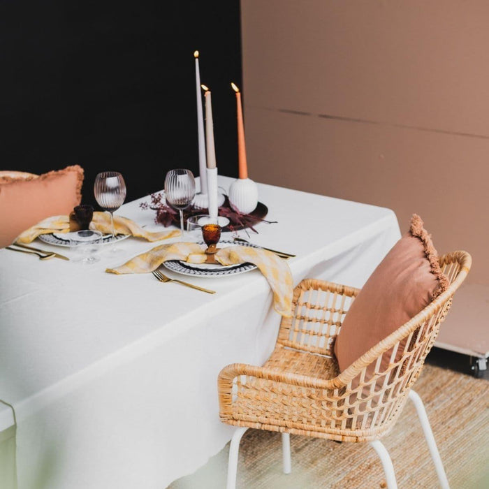 Zoek je een mooi en stijlvol tafelkleed dat je tafelblad doet opvallen? Zoek niet verder dan het Bourdon Canvas Mimi tafelkleed van Maison de Vacances. Dit prachtige tafelkleed is in Frankrijk gemaakt van een linnen en katoen mix, en heeft een mooie randafwerking in kaki kleur. Perfect voor zowel formele als informele gelegenheden, dit tafelkleed zal zeker indruk maken op je gasten. Of je nu een etentje organiseert of een barbecue in de achtertuin houdt, laat je tafeldecor schitteren met dit prachtige tafelkleed.