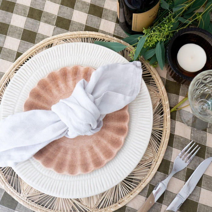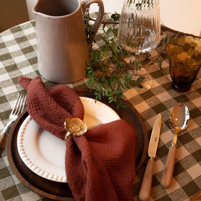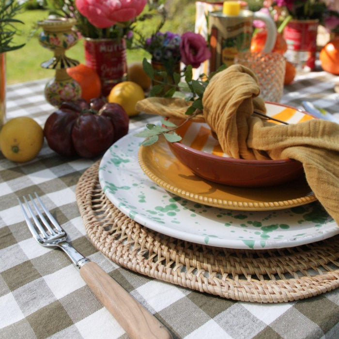 Maak kennis met het Tafelkleed Bourdon Canvas Mimi Vichy - Vichy Kaki Bourdon Noir 145x300cm, een prachtig tafelkleed uit Frankrijk dat zeker een vleugje elegantie toevoegt aan elke omgeving. Dit prachtige tafelkleed is gemaakt van een 52% linnen en 48% katoenmix, en is geweven met tweekleurig geverfd garen om zijn unieke look te creëren. Het tafelkleed heeft een prachtig kaki motief met zwart rand, dat een vleugje Franse flair toevoegt aan dit toch al schitterende tafelkleed. Of je nu een etentje organiseert of gewoon een vleugje luxe aan je dagelijkse eetervaring wilt toevoegen, het tafelkleed Bourdon Canvas Mimi Vichy is het perfecte tafelkleed voor elke gelegenheid.