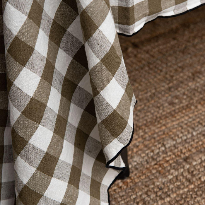 Tafelkleed Bourdon Canvas Mimi Vichy - Vichy Kaki & Bourdon Noir 145x350cm