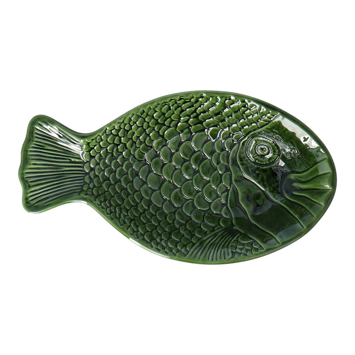 Maak kennis met de diepe schaal Fish 32,5cm! Het is de perfecte schaal om kleur, creativiteit en conversatie toe te voegen aan elk huis. Deze unieke vissenschaal van keramiek heeft een warme groene afwerking die glinstert en schittert in het licht. De subtiele maar decoratieve reliëfpatronen creëren een prachtig visueel effect dat zich echt onderscheidt van meer traditionele schalen. Of je nu op zoek bent naar iets speciaals voor je huis, of naar een ongewoon cadeau voor een geliefde - deze unieke schaal zal zeker indruk maken!